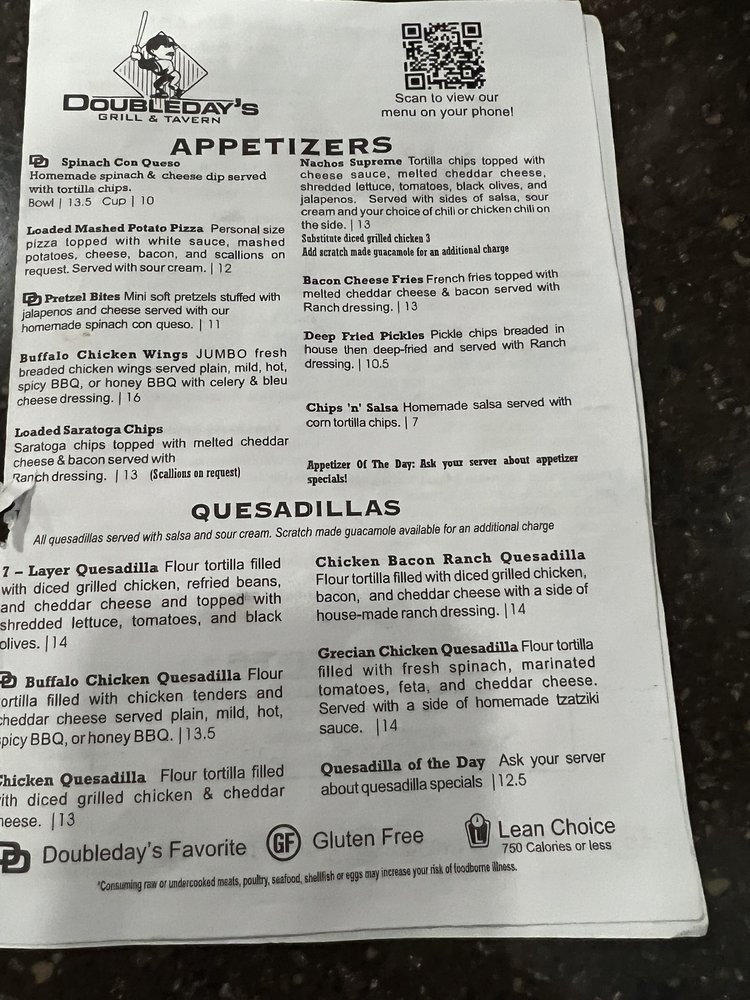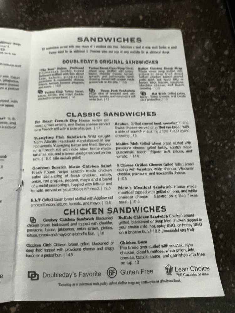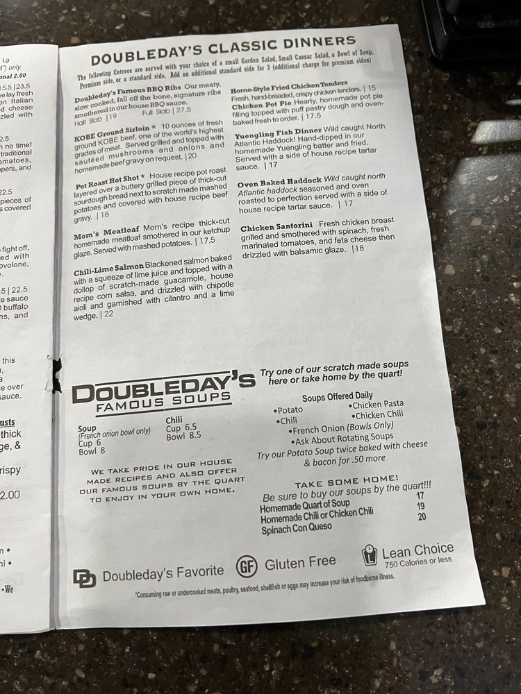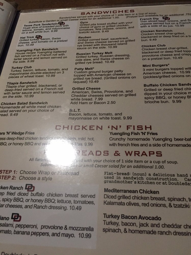 Doubleday's Grill and Tavern Menu (Update 2025)